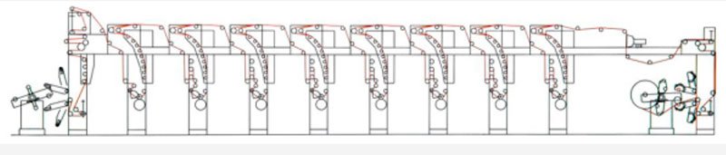 La machine convient à une cellophane, BOPP, PET, PVC, PE, papier d'aluminium, paquet de cigarettes, papier de cyprès de Chine, carton liquide et tambour Le papier (30-300 g/m2) a de bonnes performances d'impression du tambour Matériau de multi- impression couleur.